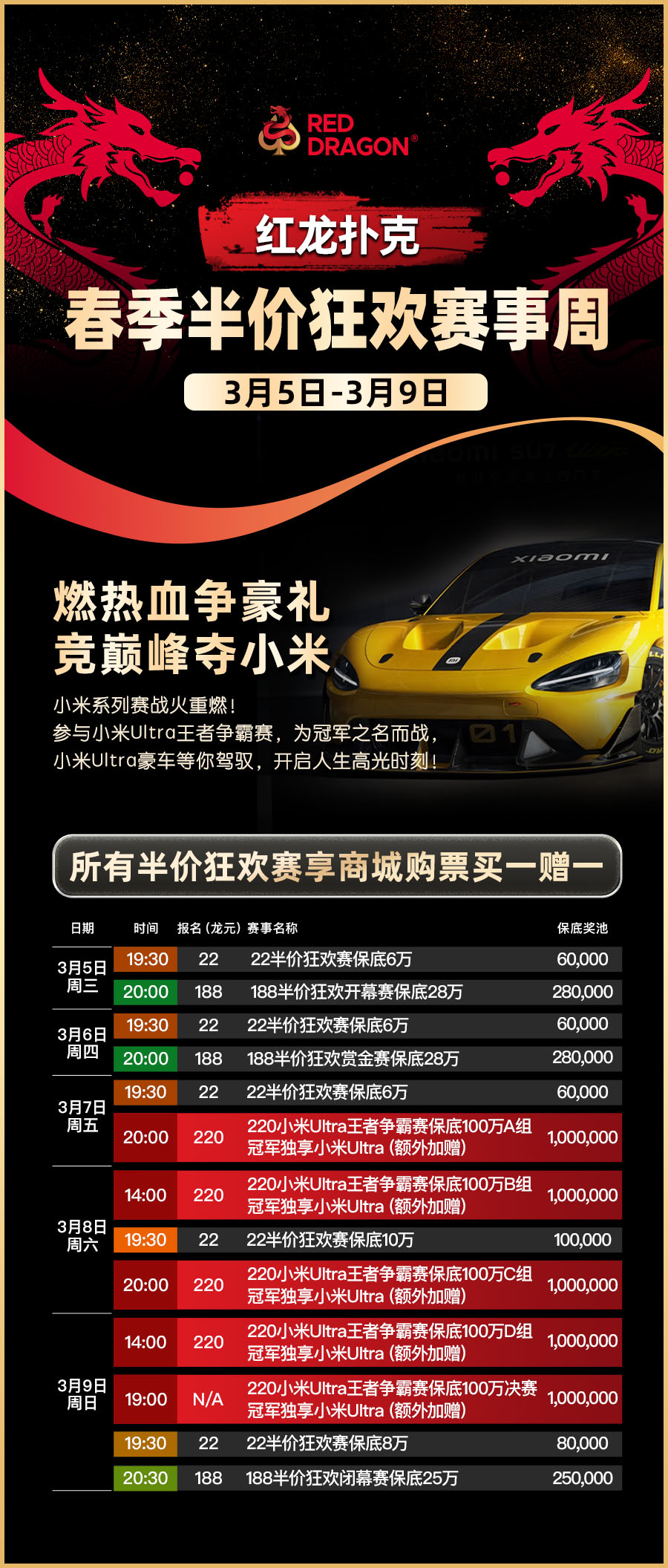 • 冠军独享小米SU7 Ultra(红龙扑克额外加赠)